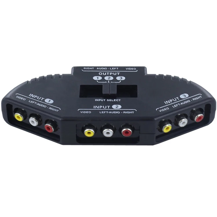 Comprar 1 unidad de interruptor divisor de caja Selector negro AV RCA de Audio y vídeo de 3 vías con Cable RCA para TV x-box reproductor de DVD interruptor de dispositivos