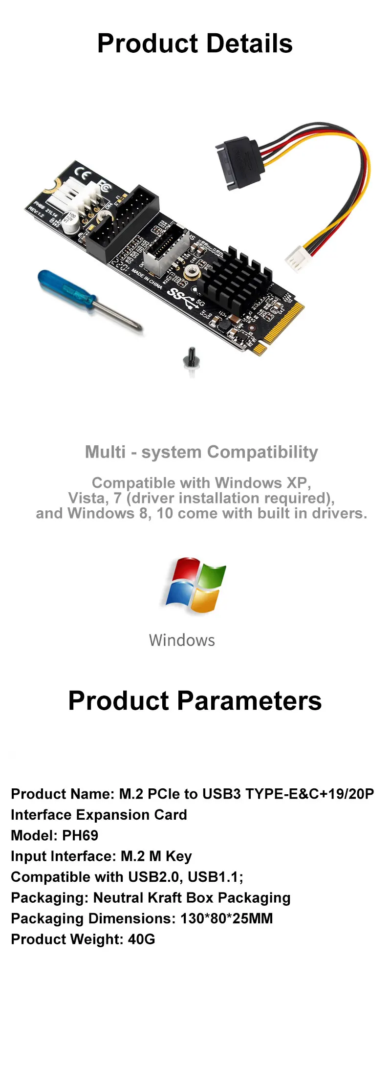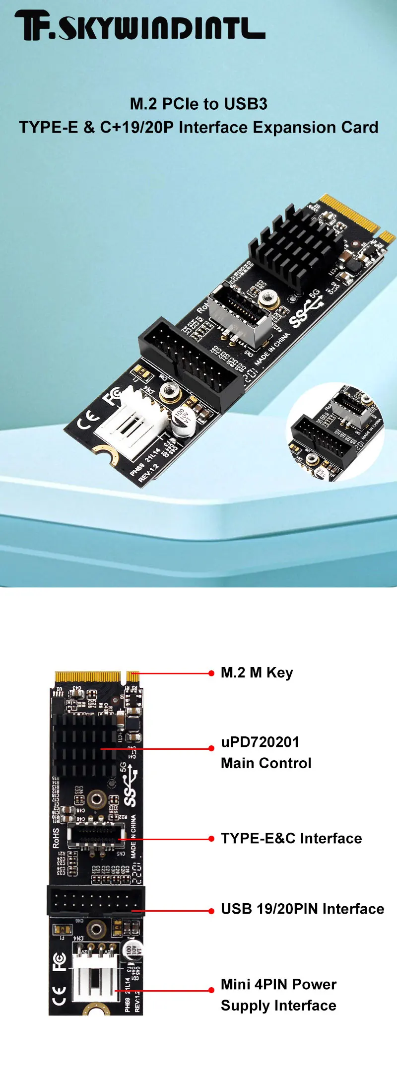 Product name: M.2 PCIE to USB3 TYPE-E&C+19/20P interface expansion card
