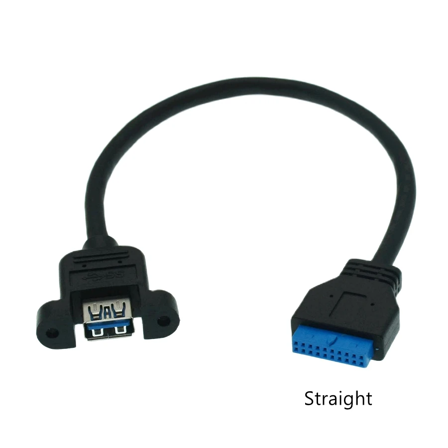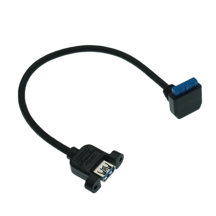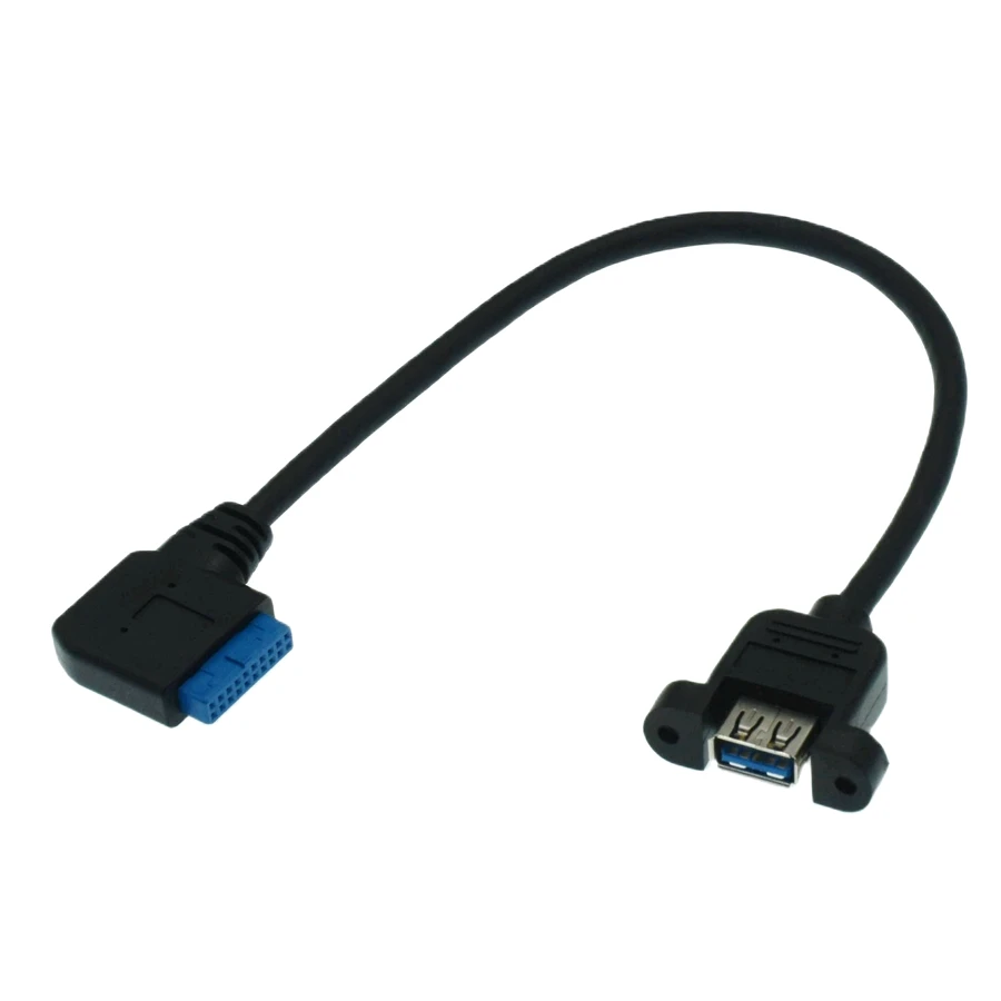 USB 3,0 puerto único A conector de tornillo hembra tipo a placa base en ángulo hacia arriba Cable de cabecera de 20 pines