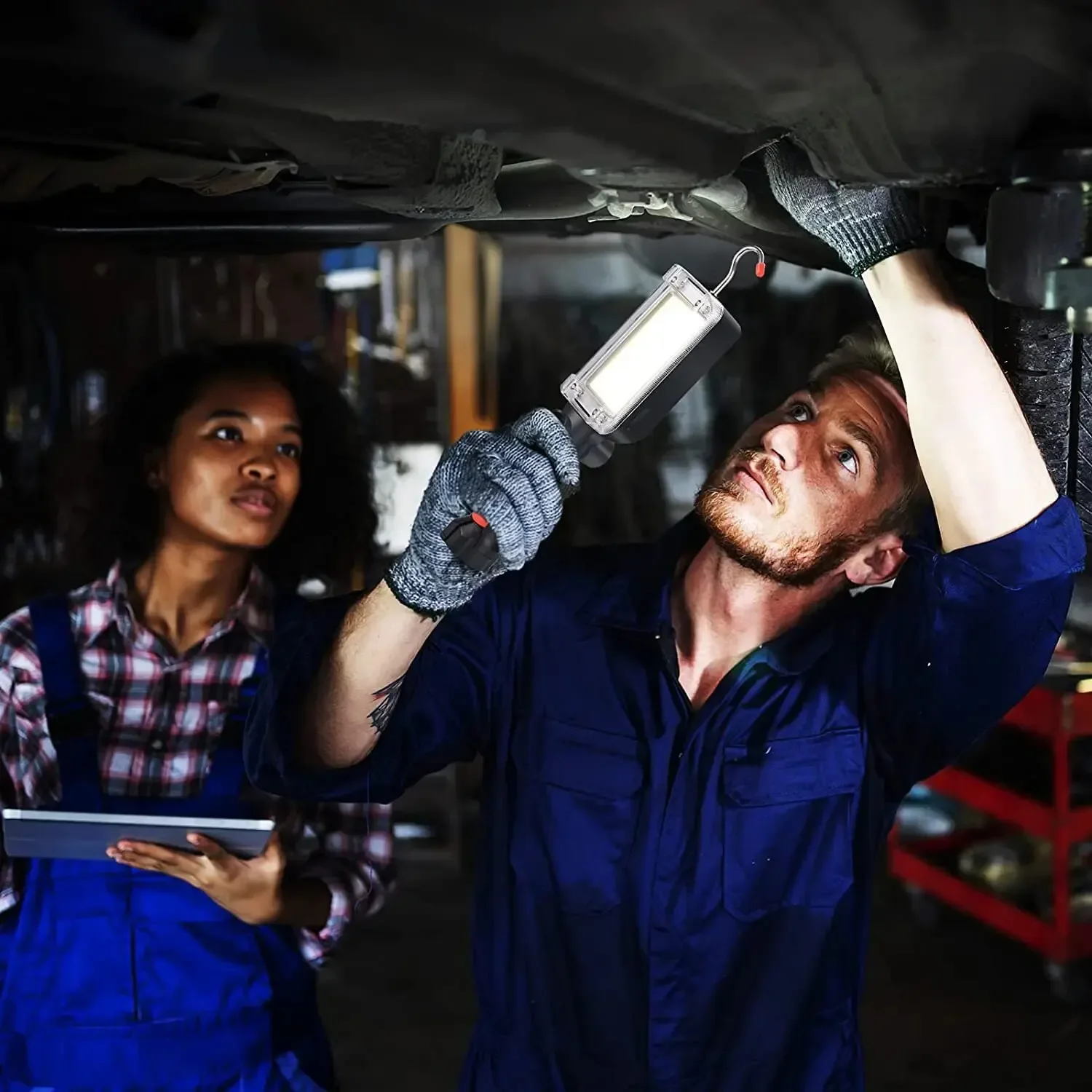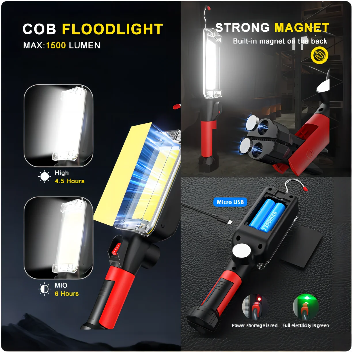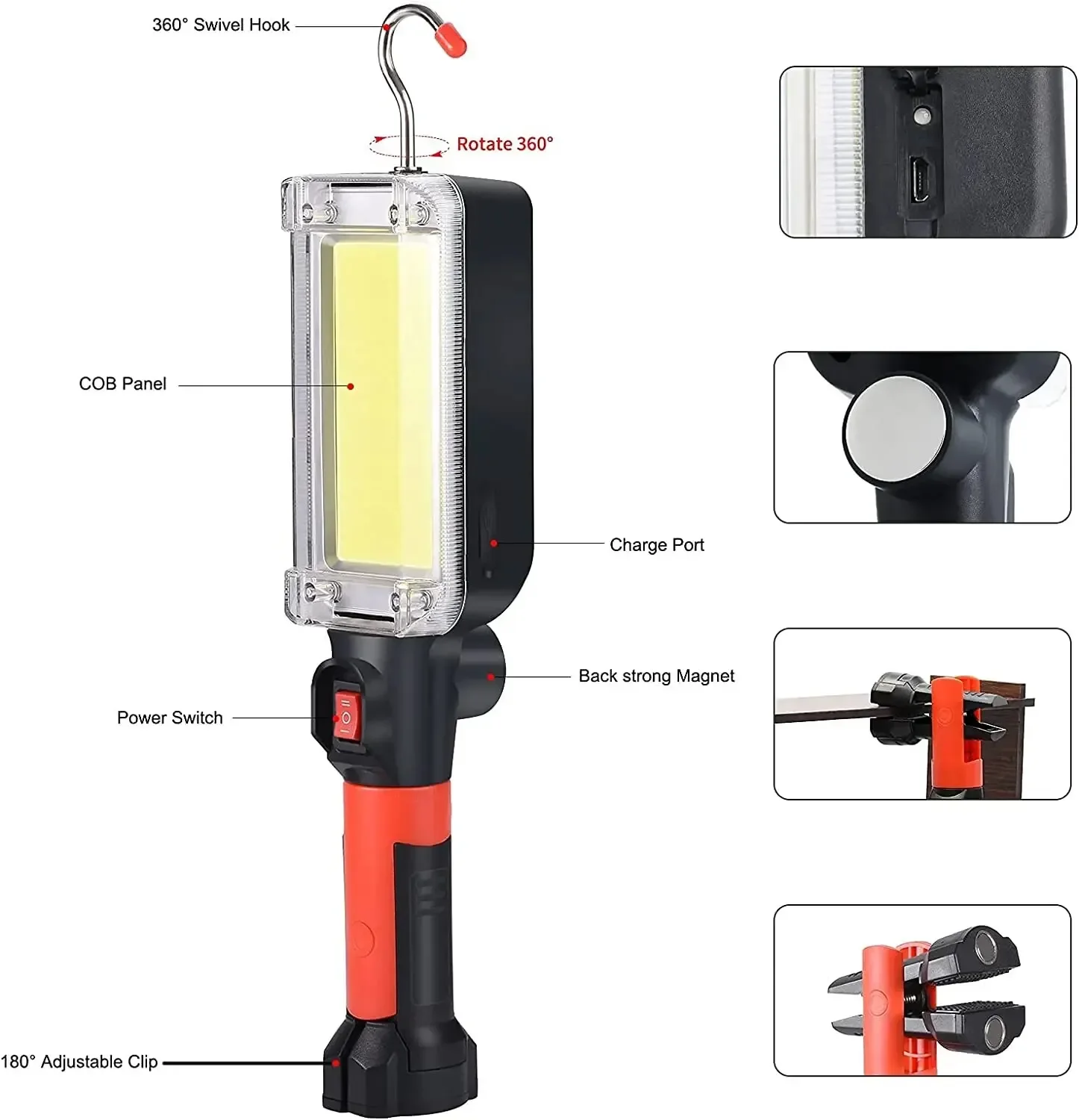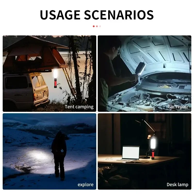 Con un poderoso imán en la parte posterior, puede conectarlo al automóvil u otra superficie metálica para usarlo como luz de trabajo, lámpara de camping.