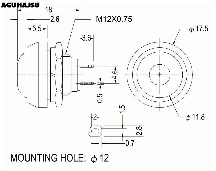 Distancia de 2 orificios de montaje: 40 mm/1,57"