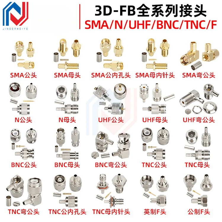 1 unids/lote conector alimentador de cobre puro 50-3 engarzado enchufe RG58 SMA/BNC/TNC/UHF/M/F/N conector RF
