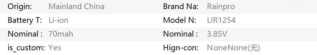 1 unids/lote LIR1254 70mah batería de botón suave recargable 3,8v 4.35v para auriculares Bluetooth de alto voltaje