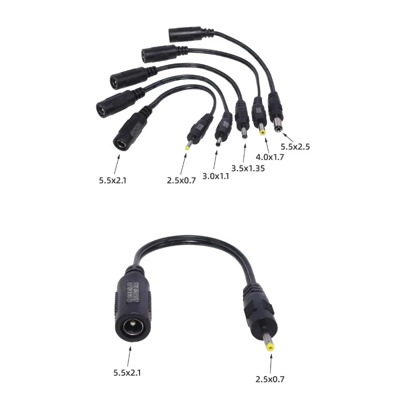 6-in-1-Kompatibilität- Konvertiert5,5×2,1 mm weiblichzu mehreren männlichen Größen: