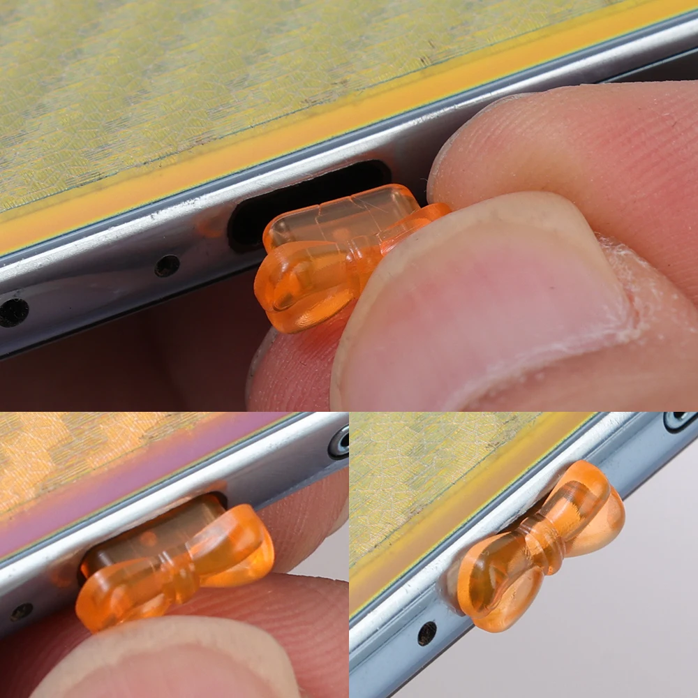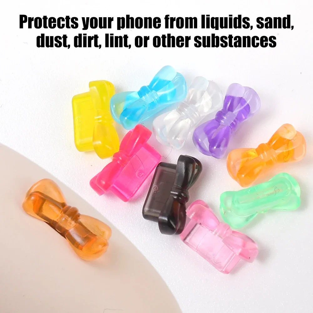 Descripción. Lindo y bonito tapón antipolvo del puerto de carga del arco Translúcido y colorido, se puede combinar con el color de su teléfono o funda. Protege su teléfono celular de líquidos, arena, polvo, suciedad, pelusa u otras sustancias.Resistente al desgaste y duradero, no es fácil de rayar ni desgastar