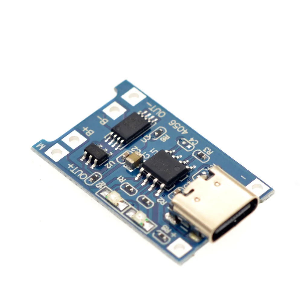 La base USB TIPO C y el pad + - además son terminales de entrada de energía y están conectados a un voltaje de 5V.B+ está conectado al electrodo positivo de la batería de litio y B- está conectado al electrodo negativo de la batería de litio.OUT+ y OUT- están conectados a cargas, como mover los polos positivo y negativo de la placa de refuerzo u otras cargas.