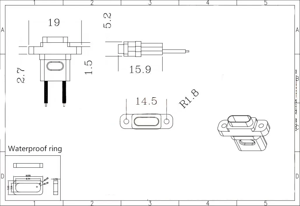 Conector USB 3,1 impermeable tipo C, conector hembra DIY, puerto de alimentación USB tipo C con Cable