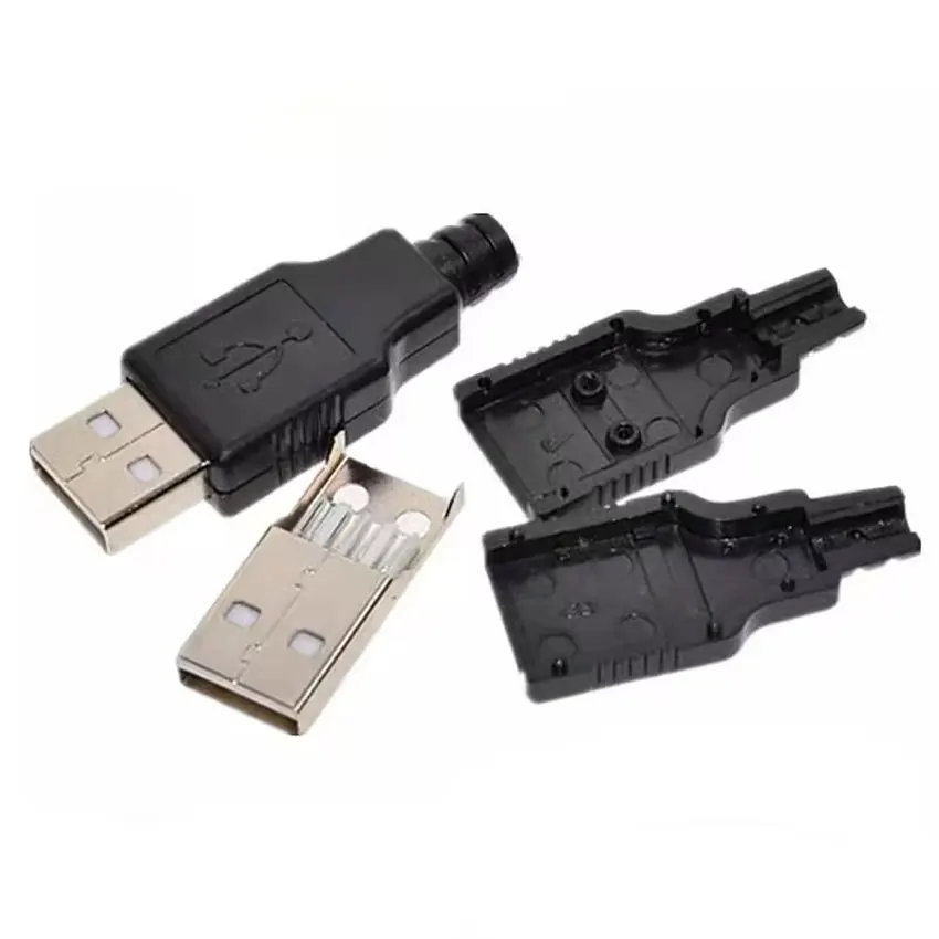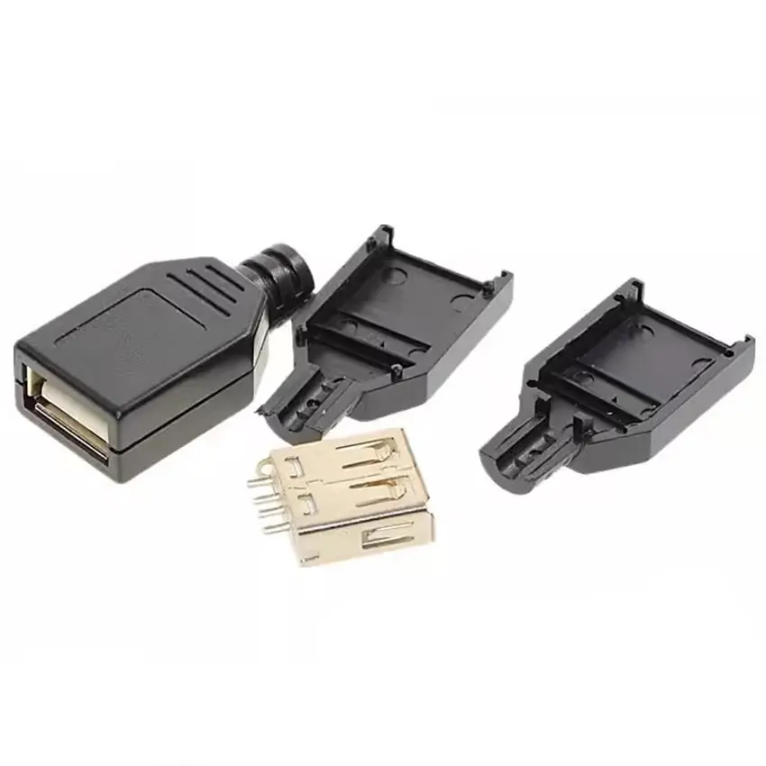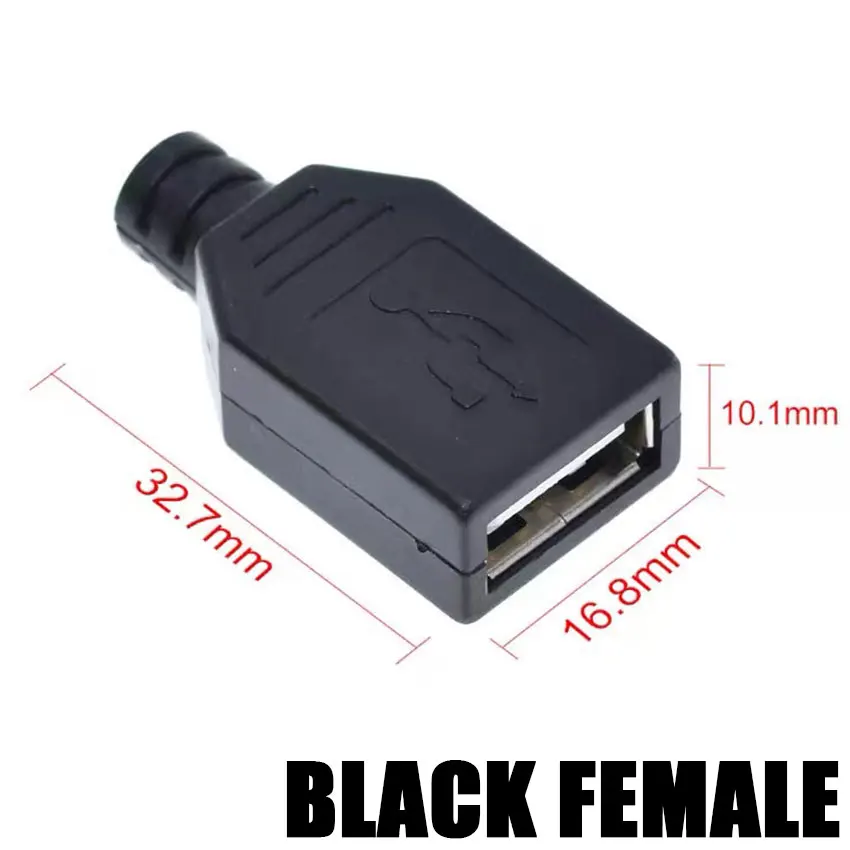 10/30/50 Uds conector USB tipo A macho hembra enchufe de 4 pines con cubierta de plástico negro USB 2,0 tipo A Kits de soldadura DIY