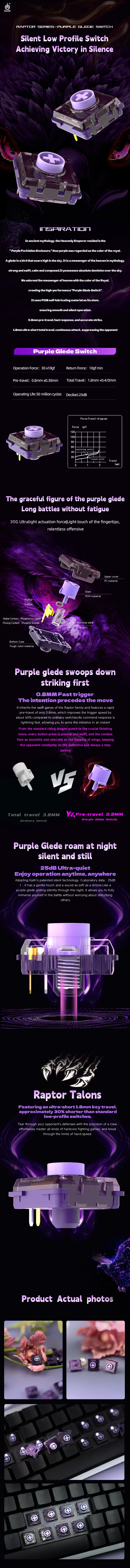 Elaborados por Kailh, estos interruptores están hechos de materiales duraderos que garantizan longevidad y confiabilidad.