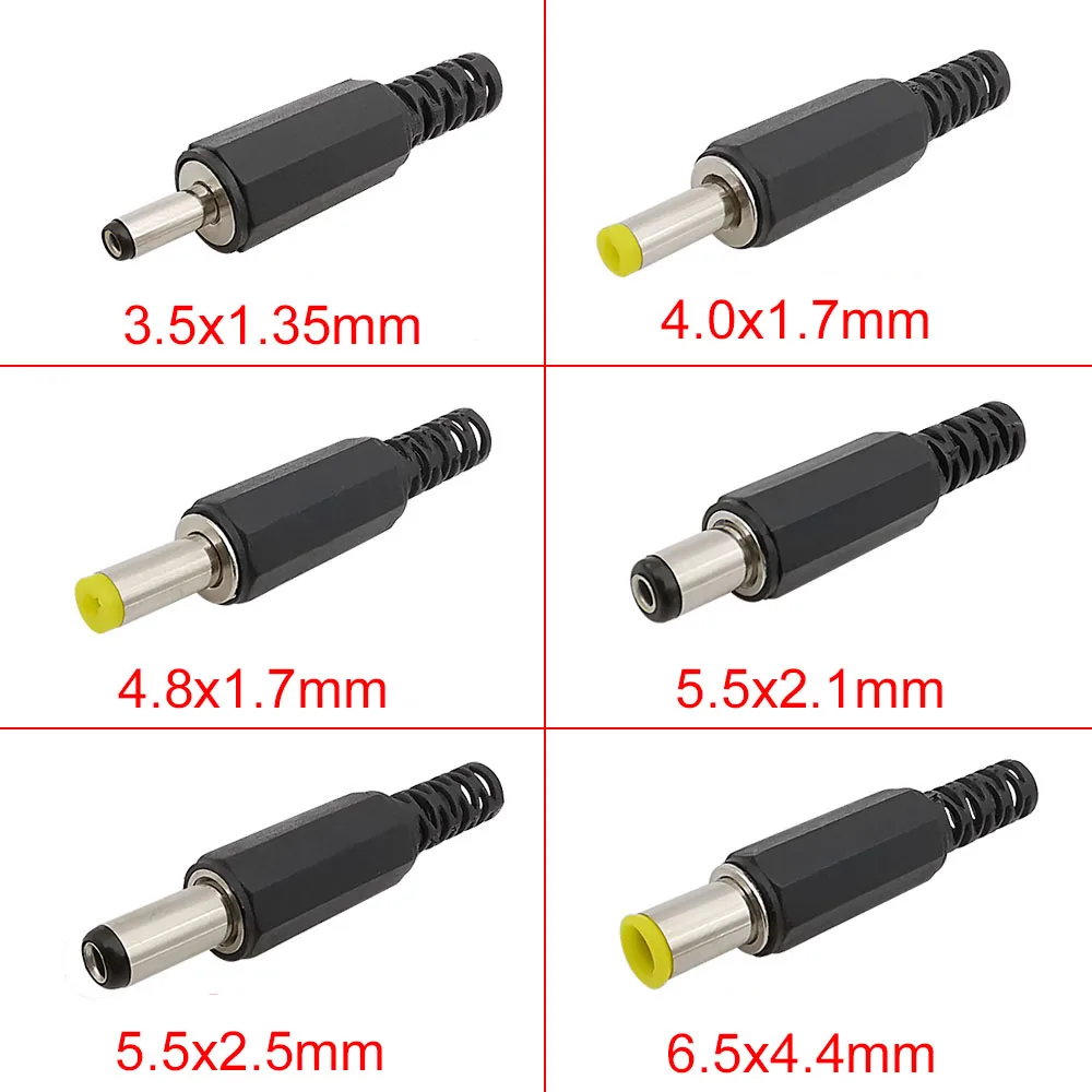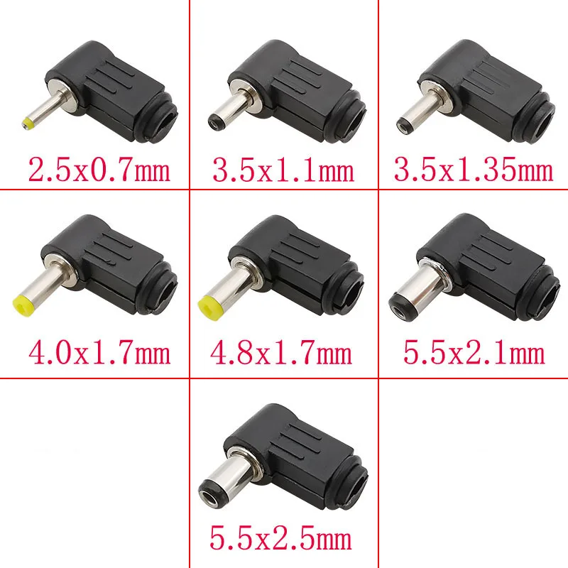 5/10 Uds. Conector adaptador de enchufe macho de alimentación CC 2,5x0,7/3,5x1/3,5x1.35/4.0x1.7/4.8x1.7/5.5x1/5,5x2,5x2,5mm enchufes de 90/180 grados