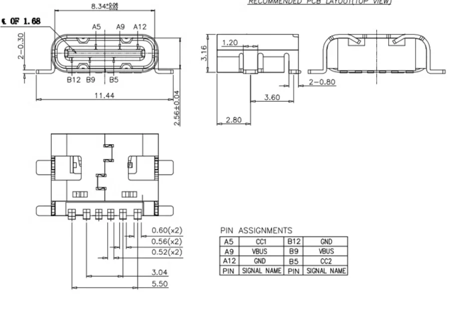 Conector USB tipo C hembra, 6 pines, montaje completo, 6P, 5V, 5A, conector USB Simple de alta corriente y carga rápida