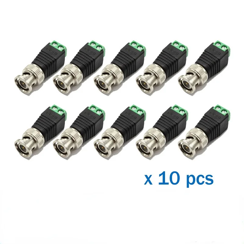 Conector BNC de Metal macho de 10 piezas con conector DC Terminal de tornillo UTP Video Balun para sistema de CCTV de cámara de vigilancia CCTV