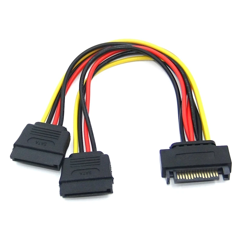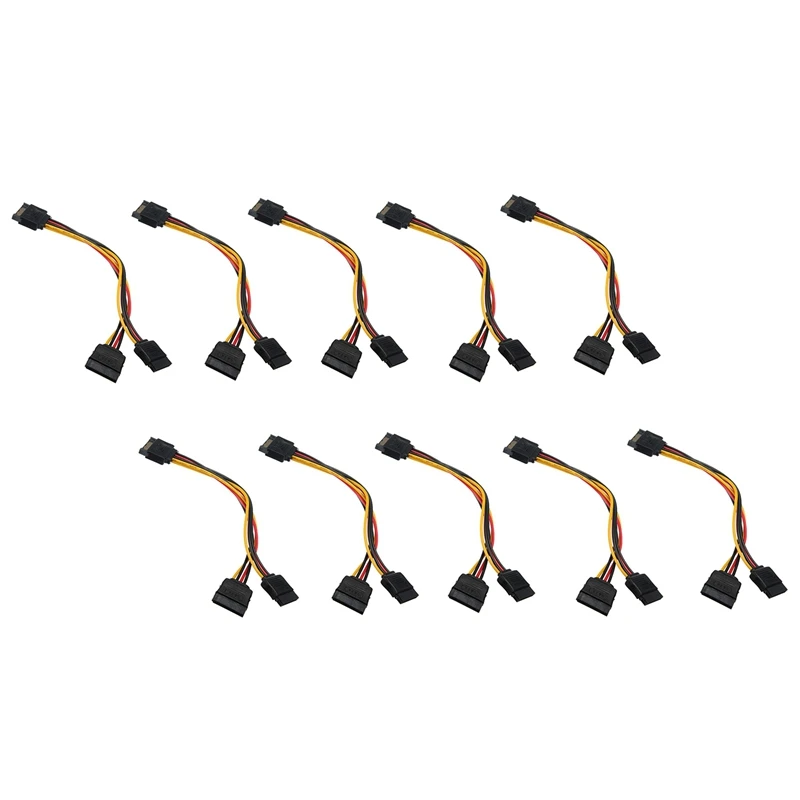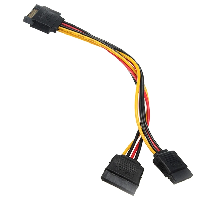 10 Pcs 15 Pin SATA (Male) To 2 SATA Power (Female) Cable Splitter Brand New and High Quality. SATA 15 Pin Male to 2 SATA 15 Pin Female Power Cable. Extend the length for your SATA power cable. Standard: 15 Pin SATA 1 Male to 2 Female.