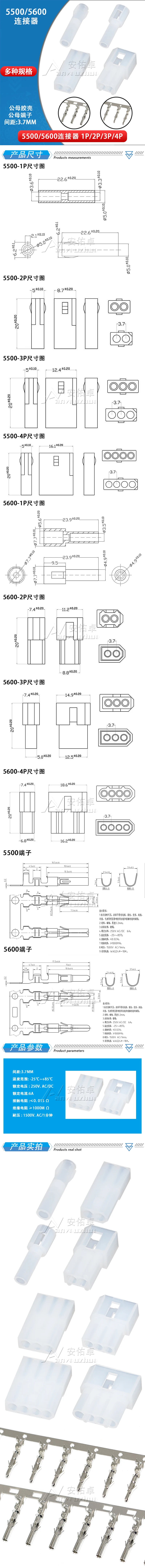 Comprar 10 juegos 5500 5600 conector de tope de aire de 3,7mm de paso 1P 2P 3P 4P conector de terminal de carcasa de goma macho hembra