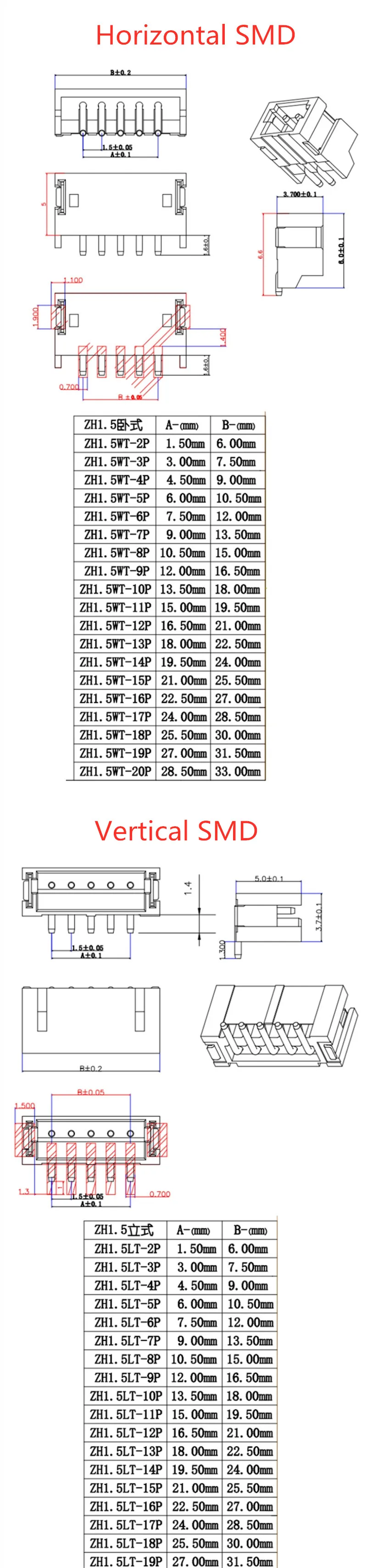 Comprar 10 juegos de conector de pines ZH1.5 2/3/4/5/6/7/8/9/10, paso de 1,5 MM, cabezal de pines SMD Vertical/horizontal + carcasa + Terminal