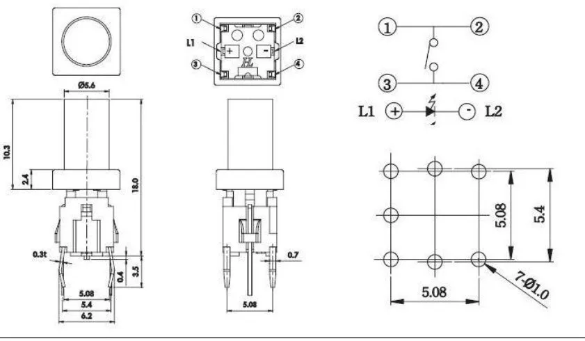 Comprar 10 juegos de interruptores de botón LED PB6149L luz LED azul/roja/amarilla/verde + tapas de botón cuadradas