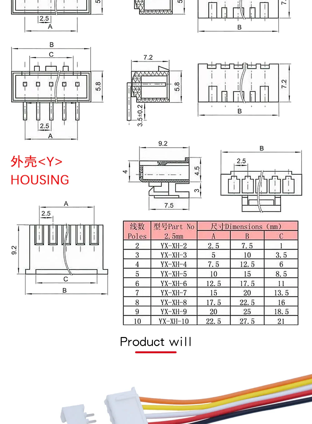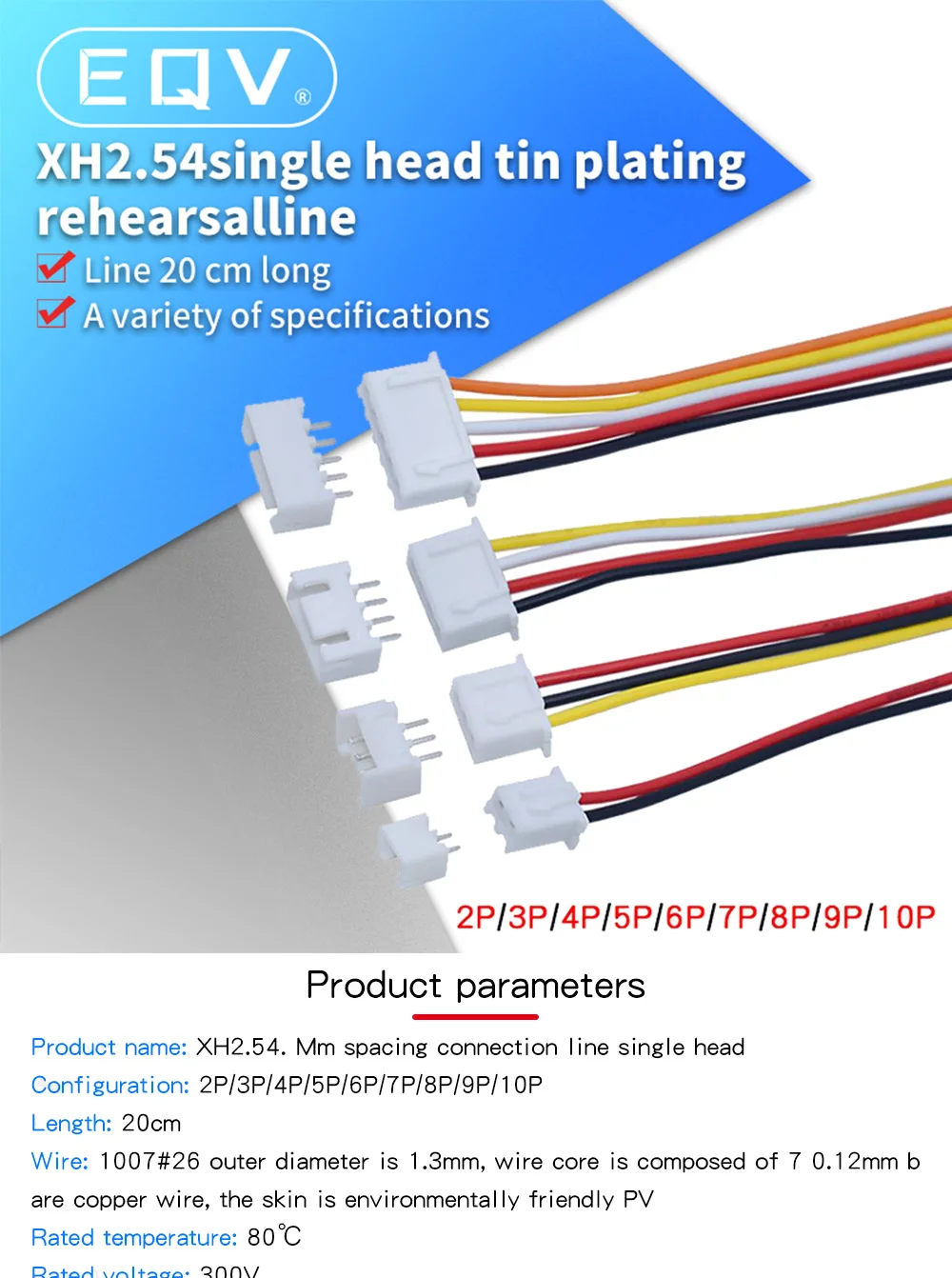 Comprar 10 juegos JST XH2.54 XH conector de Cable de 2,54mm 2/3/4/5/6/7/8/9/10 Pin paso macho hembra enchufe 20cm longitud del Cable 26AWG