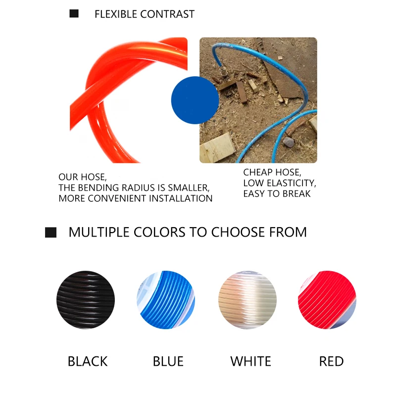 2. Alta elasticidad: el pequeño radio de curvatura permite que el tubo de PU pase por el espacio reducido.
