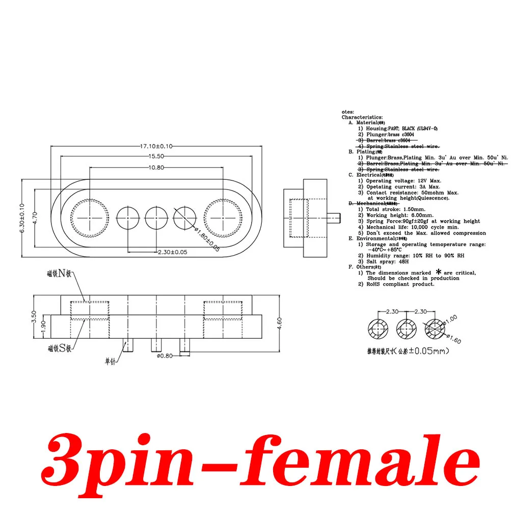 10 pares 1A 3pin impermeable magnético Pogo Pin conector Pogopin macho hembra 2,3mm toma de corriente CC con resorte