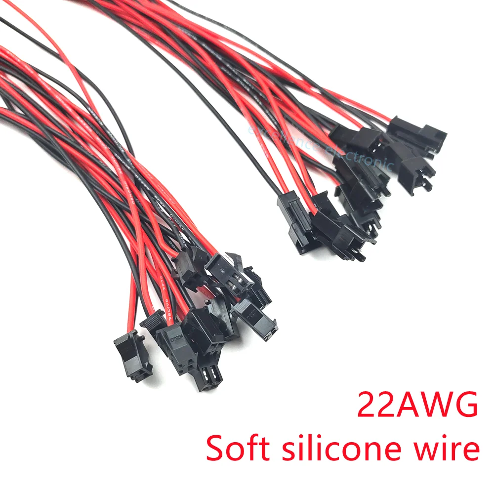 Comprar 10 pares de conectores macho y hembra SM de 2 pines de 2,54mm, adaptador 2P con Cable de silicona de 22AWG y 200mm para tira de luces LED