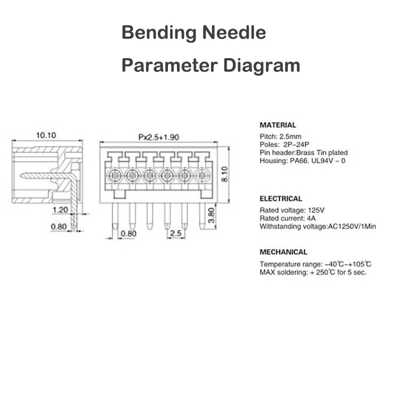 Las piezas de plástico están hechas de material aislante retardante de llama de nailon PA66 modificado (grado retardante de llama: UL94, V-0) y los componentes elásticos están hechos de acero inoxidable de alta calidad.Larga vida útil, sin corrosión, resistencia al envejecimiento, presión 4KV, temperatura 105 C de trabajo normal.Para piezas metálicas se utilizan latón, cobre fósforo y acero de alta calidad, y estaño, níquel, zinc y otros revestimientos protectores se recubren respectivamente.
