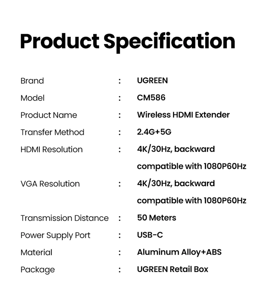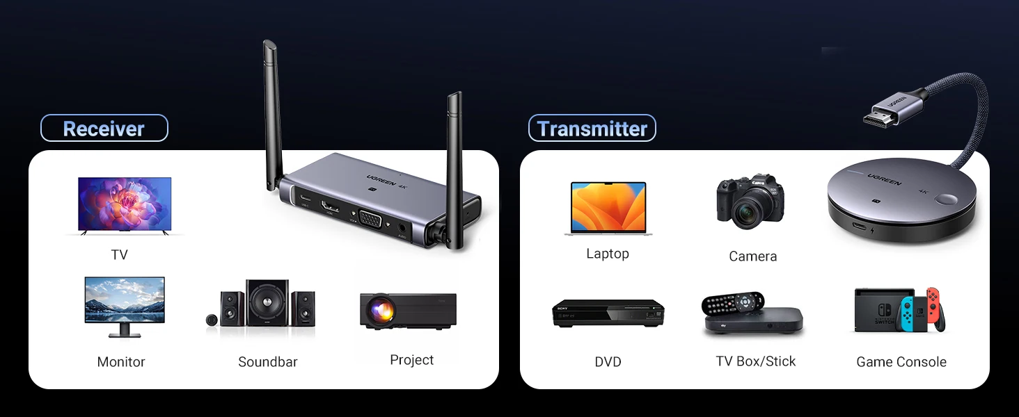 Comprar 10 PCS UGREEN Kit extensor HDMI inalámbrico 5G 50M Transmisor y receptor de vídeo