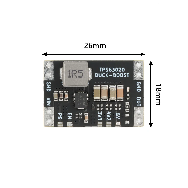 Este módulo adopta el chip especial TI TPS63020 para regulación y regulación de voltaje, con baja ondulación de salida y rendimiento estable.La frecuencia de conmutación es de hasta 2,4 MHZ y la corriente de salida es principalmente superior a 900 mA.Proporciona múltiples versiones de salida de 3,3 V, 4,2 V y 5 V, lo cual es muy adecuado para diversas ocasiones donde los microcontroladores de 3,3 V y 5 V usan baterías de carpa y USB para fuente de alimentación.Del mismo modo, el módulo reserva dos modos entre los que los usuarios pueden elegir: modo de trabajo convencional y modo de ahorro de energía.