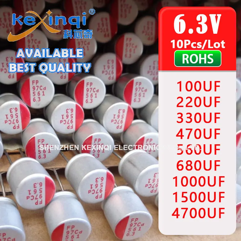 Condensadores electrolíticos sólidos de aluminio de polímero conductor de 6,3 V de 10 100/220/330/470/560/680/1000/1500/4700uf1. Póngase en contacto con nosotros para obtener instrucciones detalladas