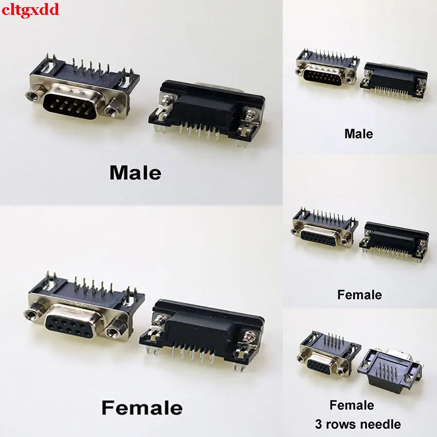 Comprar 10 piezas DR9 DR15 agujero/pin hembra/macho ángulo recto soldadura d-sub conector RS232 adaptador de puerto serie DB9/15