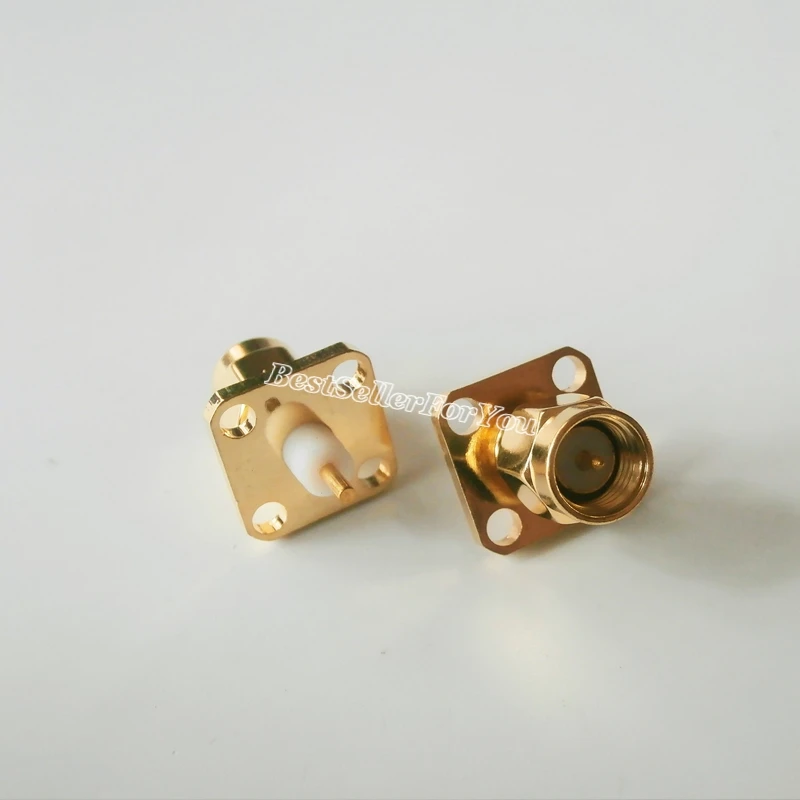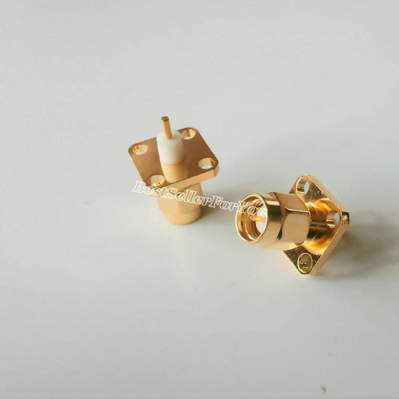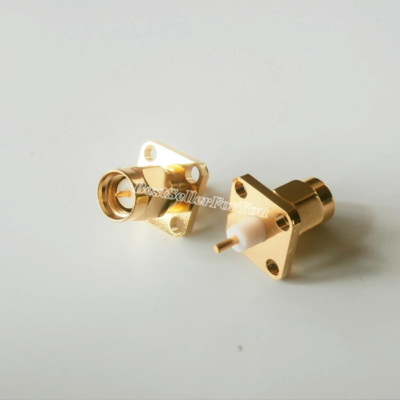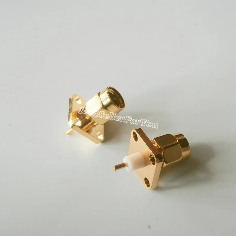 Comprar 10 piezas SMA macho jack Centro 4 agujeros brida cubierta montaje soldadura RF conector dorado nuevo