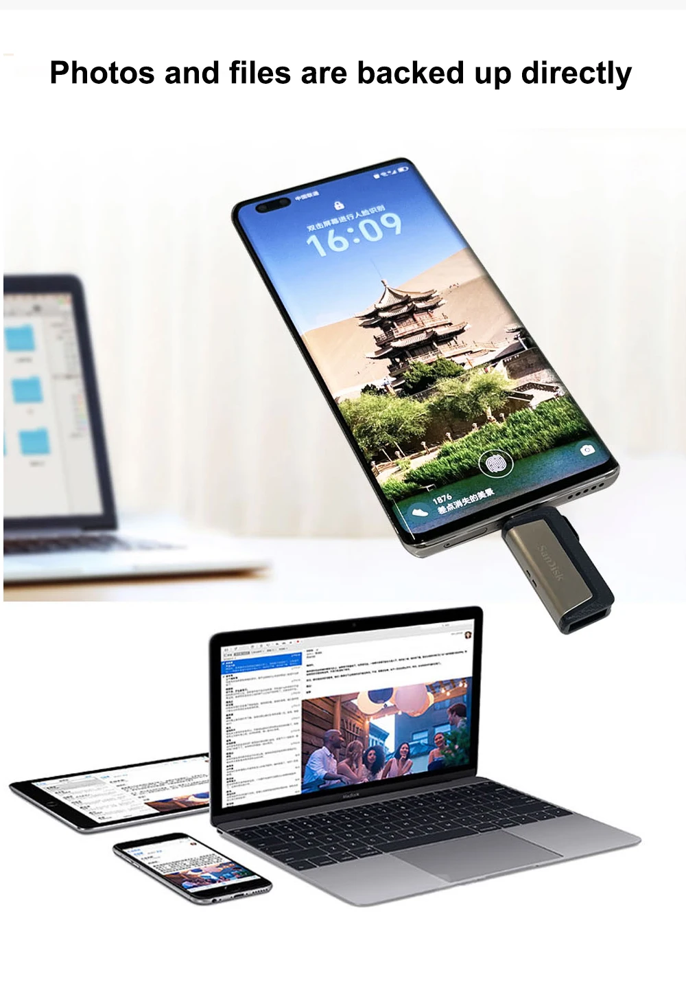 Libere fácilmente espacio en su teléfono inteligente iPhone 15 Plus/Pro/Max o USB Type-C transfiriendo rápidamente archivos entre dispositivos a velocidades USB 3.1 de hasta 150 MB/s.