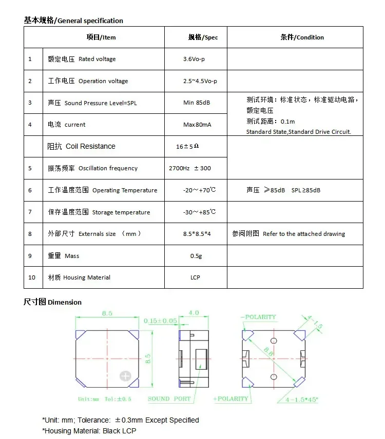 10 uds/1 ud SMD 8540 zumbador componente acústico 8,5*8,5*4MM SMD 2700Hz zumbador pasivo electromagnético SMD-8540