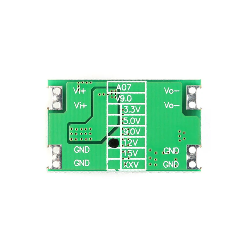 Product ParametersProduct model: A07Interface type: patch, pluginMaximum output current: 3AInput voltage: 5.5~36VOutput voltage: -3.3v/-5v/-9v/-12vMaximum efficiency: 88%Output ripple: 30mAOutput accuracy: ±0.1vSwitching frequency: 500KHzWorking humidity: 20~90%PCB thickness: 1.6mmShutdown current: not turn offWhether with isolation: without isolationCooling method: natural coolingService life: 30,000 hours without failure (not exceeding the rated value)Pin DefinitionVO-: Negative voltage output positive terminalGND: Output power supply negative terminal, generally GNDVI+: Input power positive terminalGND: Input power supply negative terminal, generally GND