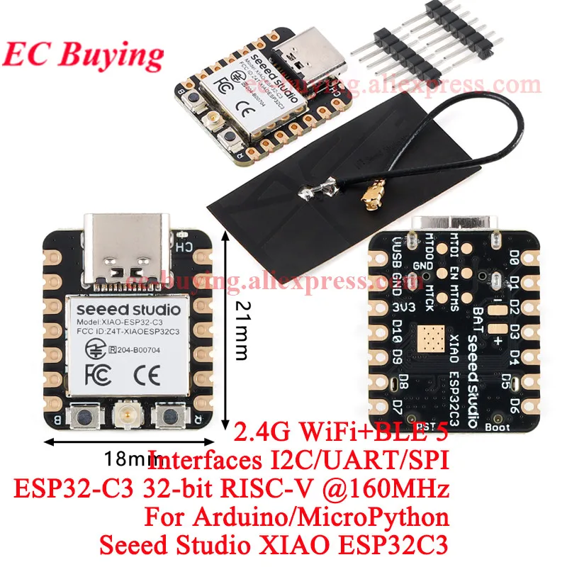 Vered Studio XIAO ESP32C3 con ESP32C3lleva un sistema Wi-Fi completo junto con la función Bluetooth Low Energy.Con su exquisito diseño y WiFi+BThabilidad, es perfecto para varios Escenarios de control de IoTy aplicaciones portátiles complejas.