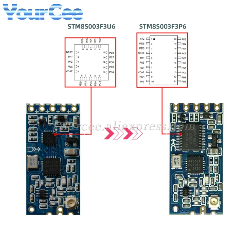 Comprar 10 uds/1 unidad HC-12 SI4463 433Mhz Wifi módulo de puerto serie inalámbrico HC12 1KM 1000m 433MHz placa de transmisión de recepción TSSOP/QFN