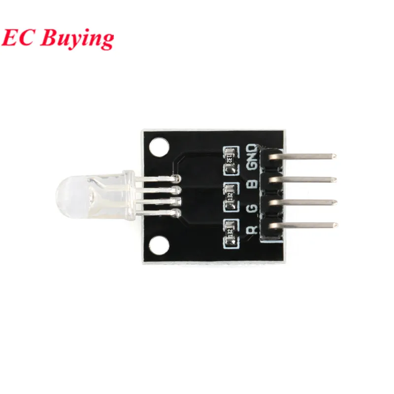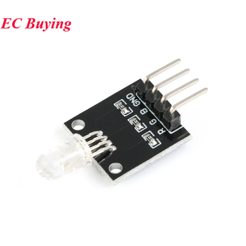 Parameter:1.PCB color: black2. Use 5mm full color super bright LED3. With current limiting resistor to prevent burning LED4. Can be connected to a variety of microcontroller5. High level LED6. Working voltage: 3.3V/5V7. Weight: 4g8. Size: 16.2mm*15.2mm*1.6mm9. R: red positiveG: green positiveB: blue positiveGND: common negativeRGB routines can be searched for download related routines in the Arduino library manager
