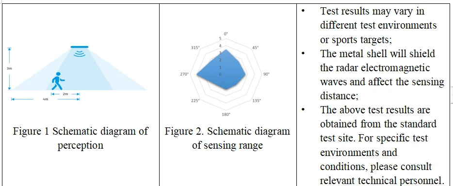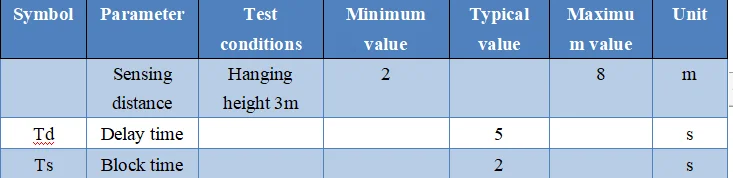 Distancia de detección: altura de suspensión 2-4 m (rayio de detección), colgar en la pared 12 m (radial)