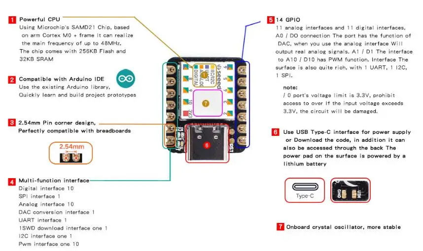 Ser el octavo miembro del, XIAO ESP32C6 sigue siendo el clásico diseño XIAO.Está diseñado paraSe ajusta a 21 x 17,5 mm, tamaño estándar XIAO, sin dejar de ser suMontaje de componentes clásicos de un solo lado.Incluso al tamaño de un pulgar, sorprendentemente se rompe15 pines GPIO totales, que incluyen 11 E/S digitales para pines PWM y 4 E/S analógicas para pines ADC.Admite puertos de comunicación serie UART, IIC y SPI.Todas estas características lo convierten en una opción perfecta para proyectos con espacio limitado, como dispositivos portátiles, o como una unidad lista para producción para sus diseños de PCBA.(consulte nuestro¡Para explorar qué apoyo puedes obtener!).