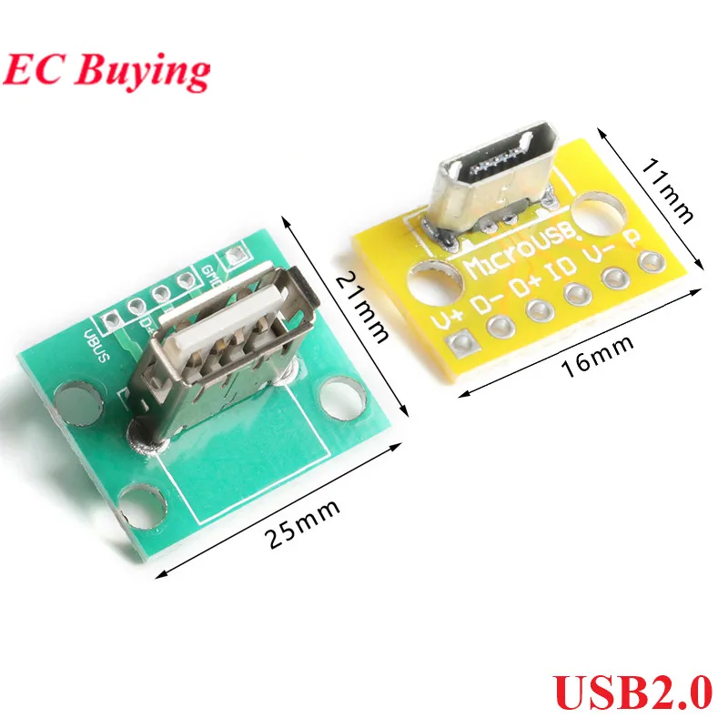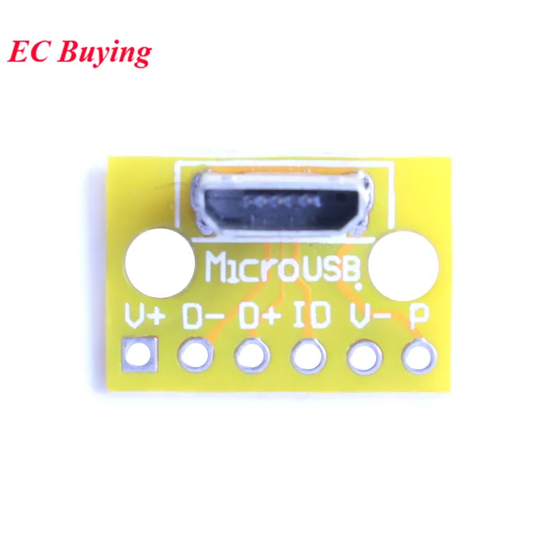 Comprar 10 uds/1 unidad Vertical USB MiCroUSB Micro USB 2,0 cabeza hembra A conector 2,54mm PCB adaptador convertidor placa de ruptura 180 grados