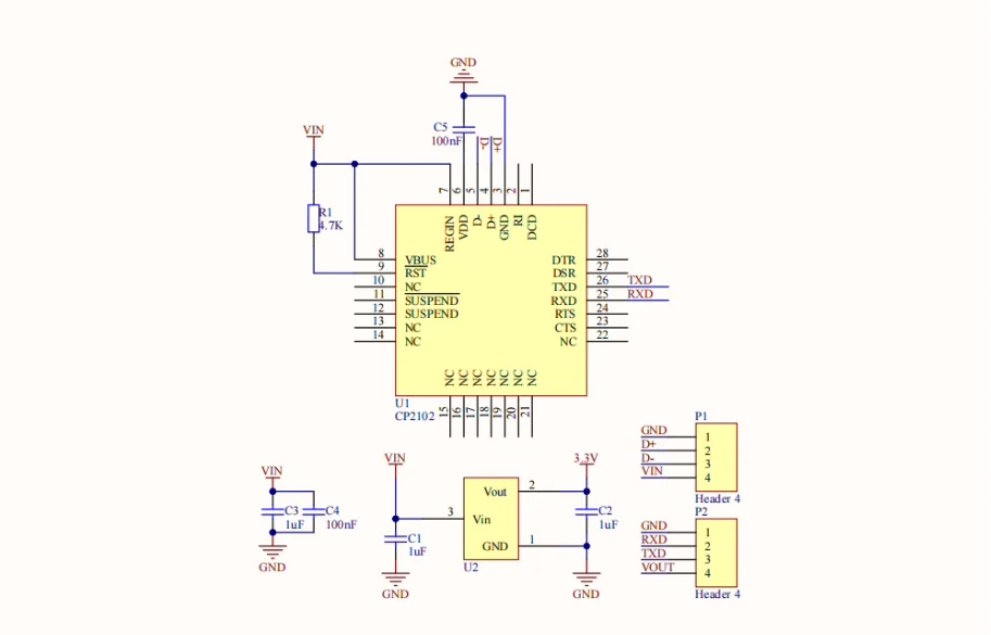 Diagrama esquemático Módulo ZY-CP2102Módulo ZY-CH340E