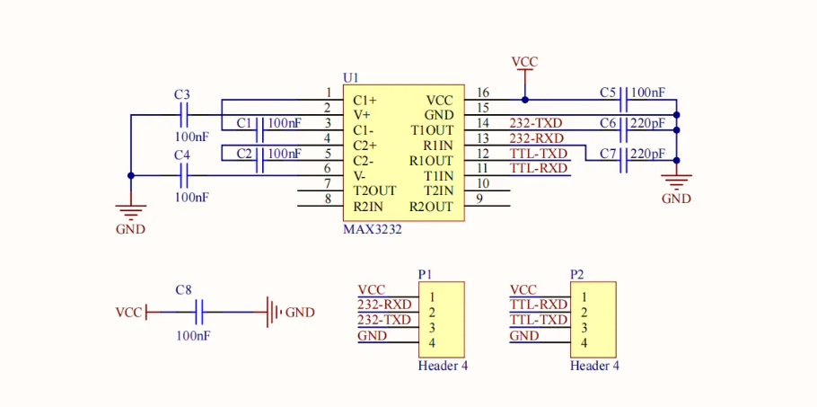 Introducción del producto El módulo TTL a RS232 es un módulo electrónico utilizado para la conversión de señales de nivel.Su función principal es convertir bidireccionamente el 3.Nivel TTL de 3V o 5V (la lógica 0 es 0V, la lógica 1 es 3.Salida de 3/5 V) desde microcontroladores y otros dispositivos al nivel estándar RS232 (la lógica 1 es de -3 V a -15 V, la lógica 0 es de +3 V a +15 V), resolviendo así problemas de compatibilidad de comunicación entre dispositivos con diferentes interfaces.Internamente, integra un chip de conversión MAX3232/SP3232 dedicado y la interfaz incluye pines de señal como TXD (transmisión) y RXD (recepción), lo que permite la conexión directa a la interfaz UART del microcontrolador.En comparación con las señales TTL, las señales estándar RS232 tienen una distancia de transmisión más larga, satisfaciendo las necesidades de comunicación en serie entre dispositivos de corta distancia.Se utilizan ampliamente en escenarios de transmisión de datos entre computadoras y periféricos (como impresoras y módems) y entre sistemas integrados y computadoras host.Los módulos TTL a RS232 son componentes intermedios de uso común para conectar dispositivos integrados de bajo voltaje a dispositivos de interfaz RS232 tradicionales.