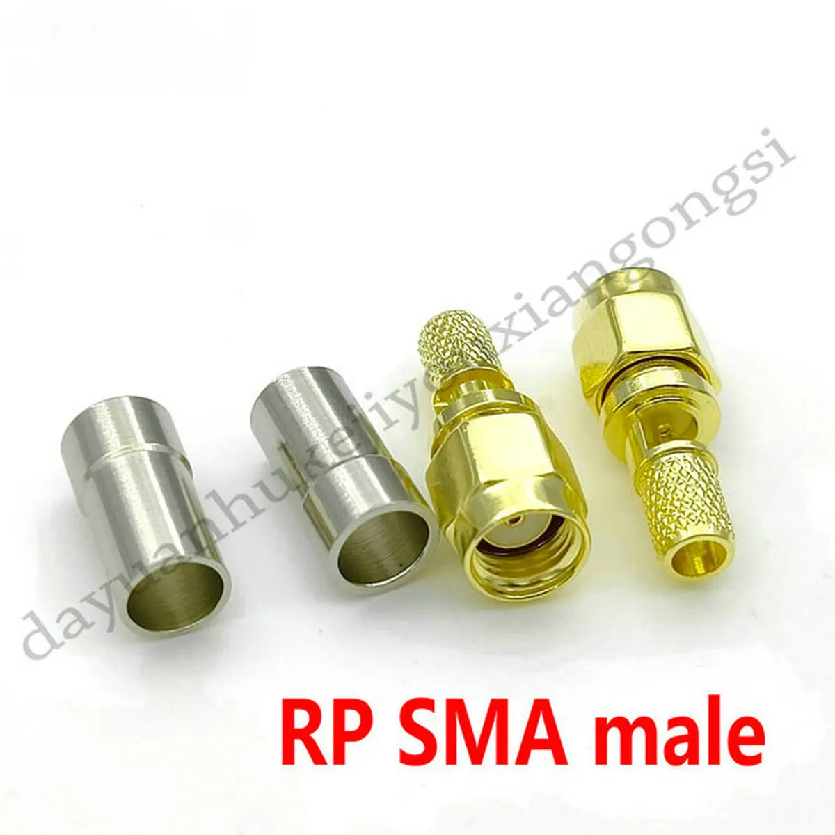 Comprar 10 UDS-100 UDS-400 Uds RP SMA macho enchufe ventana central engarzado RG58 LMR195 RG142 RG223 conector RF