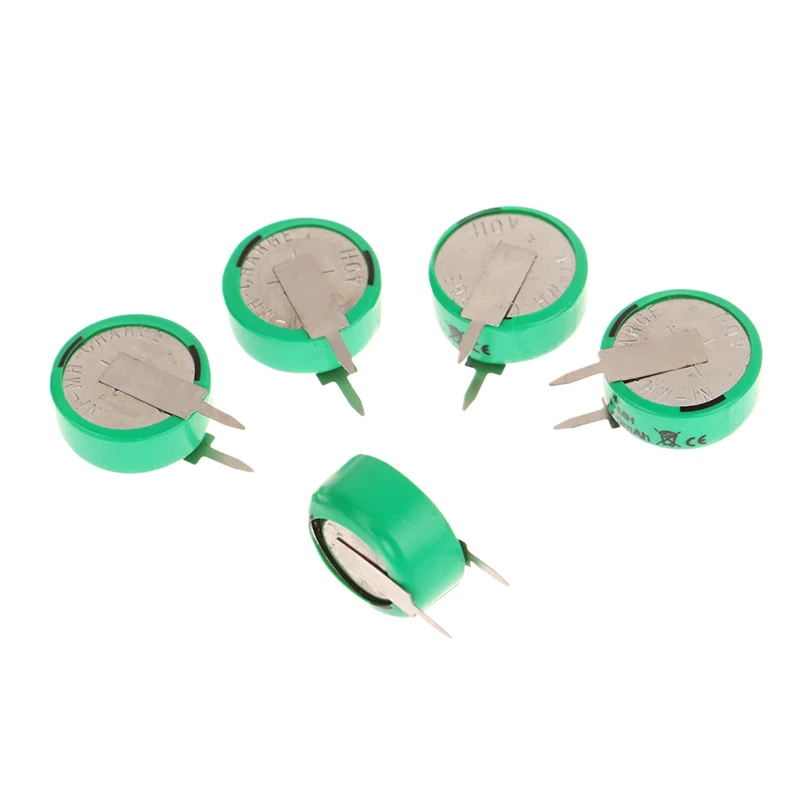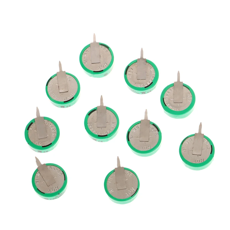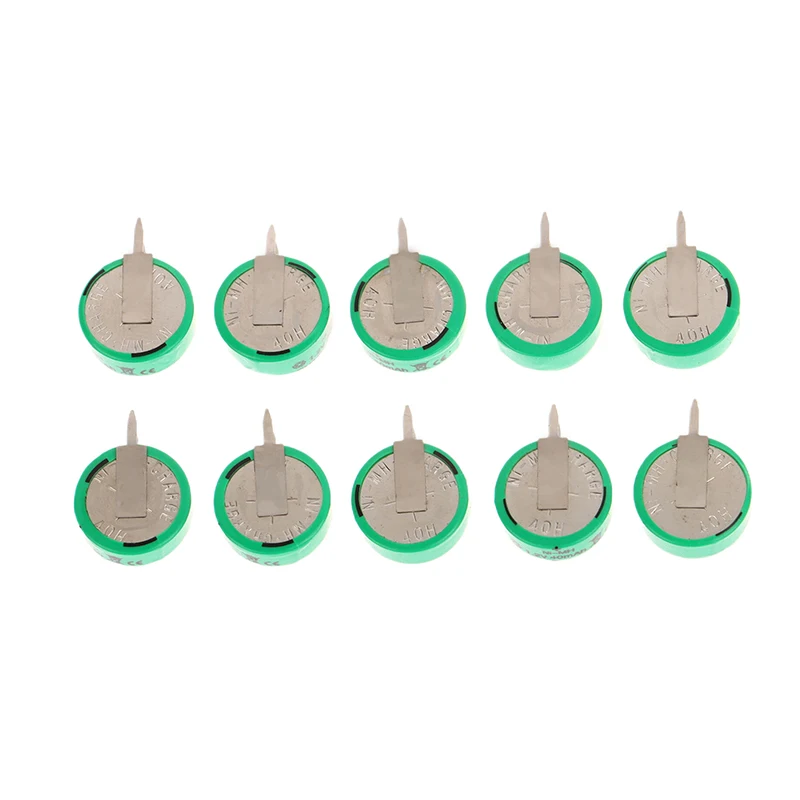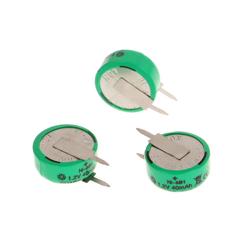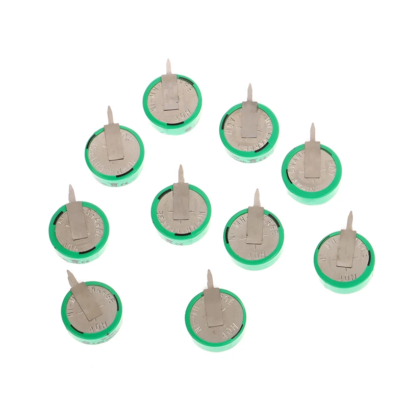 Comprar 10 Uds 1,2 V 40mAh Ni-MH batería recargable con pines de soldadura para juguetes con temporizador reloj audífono equipo Solar pila de moneda de botón