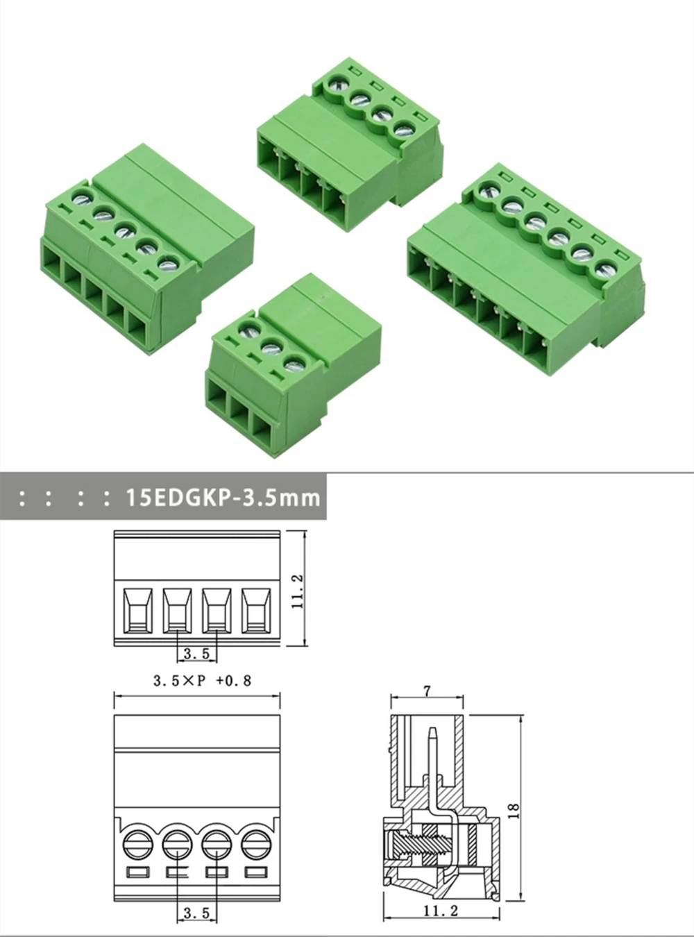 Tipo: Conenctor de bloque de terminales de tornillo 15EDGKP de 3,5 mm/3,81 mm