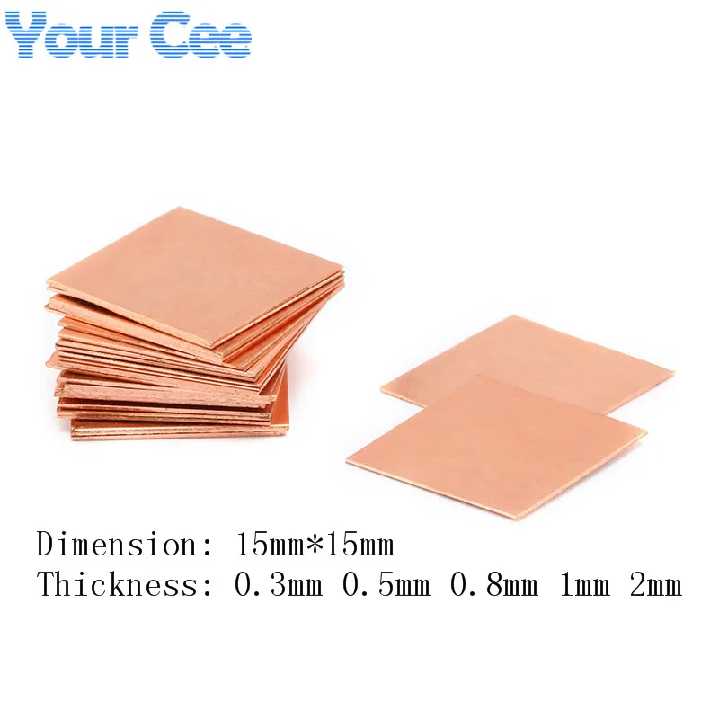 10 Uds. 15mm x 15mm 0,3mm 0,5mm 0,8mm 1,0mm 2,0mm disipador de calor almohadillas térmicas de cuña de cobre para ordenador portátil GPU VAG CPU IC