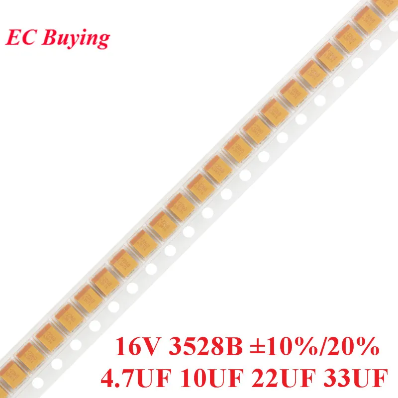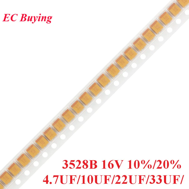 Comprar 10 Uds 16V 3528B SMD condensador de tantalio 4,7 UF 10 UF 22 UF 33 UF ± 10% ±20% tipo B 3528 1210