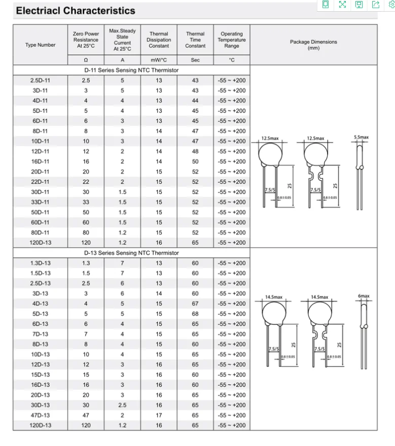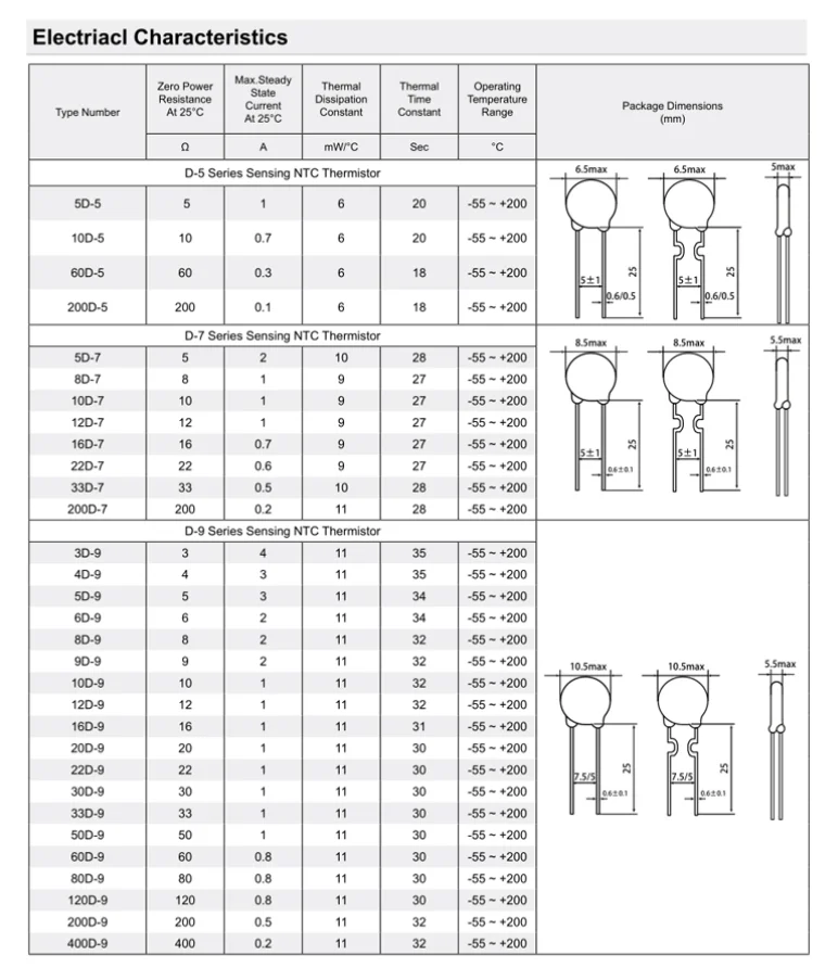 10 uds/1pc NTC 10D NTC10D termistor 10D-5 -7 10D-9 10D-11 10D-13 10D-15 10D-20 resistencia térmica de coeficiente de temperatura negativo