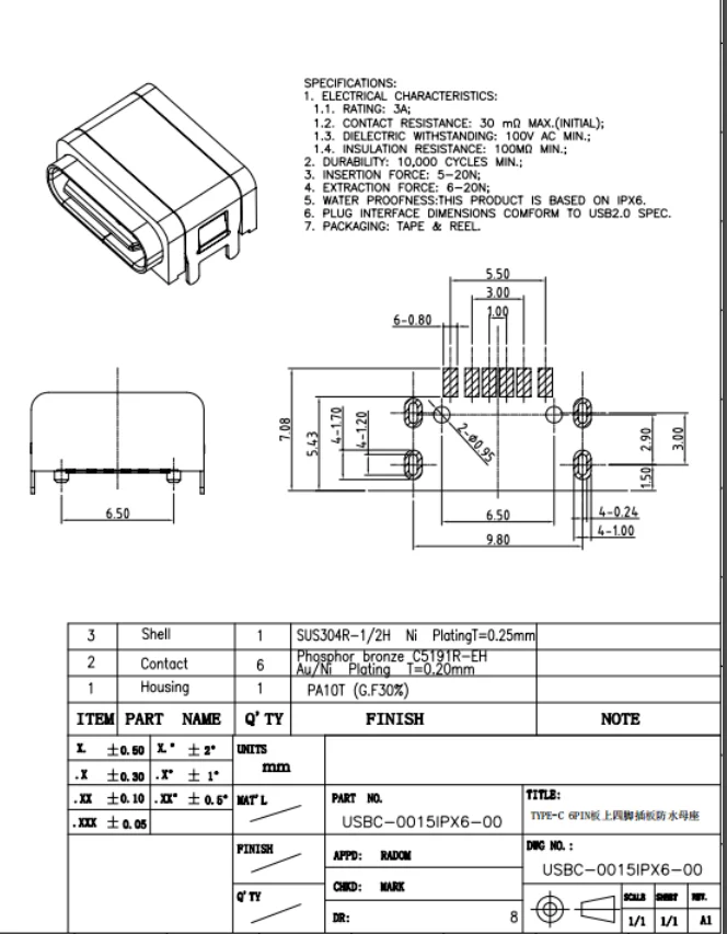6.COMODIDADES DE DIMENSIONES DE INTERFAZ PL UG A ESPECIFICACIÓN USB2.0.