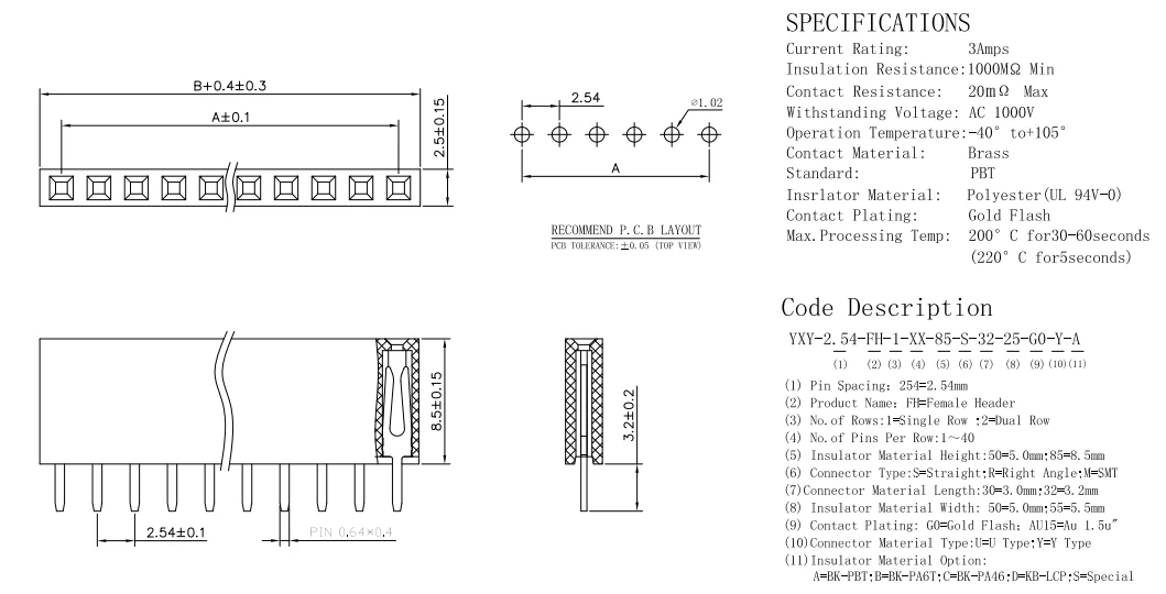 10 Uds 20 pines 2,54mm cabezal de Pin hembra de una sola fila 1x20 conector de clavija recta paso para Arduino