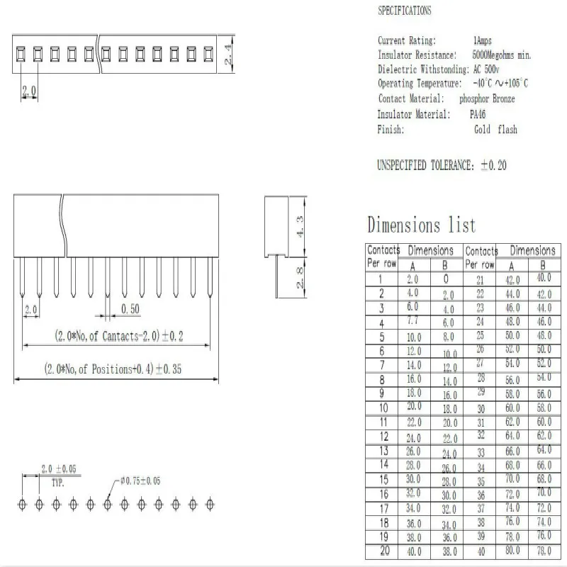 Comprar 10 Uds 2,0mm hembra cabezal de Pin de una sola fila 2/3/4/5/6/7/8/9/10/11/12/13/14/15/16/20/40P 2,0 conector PCB de tira de Pin recto